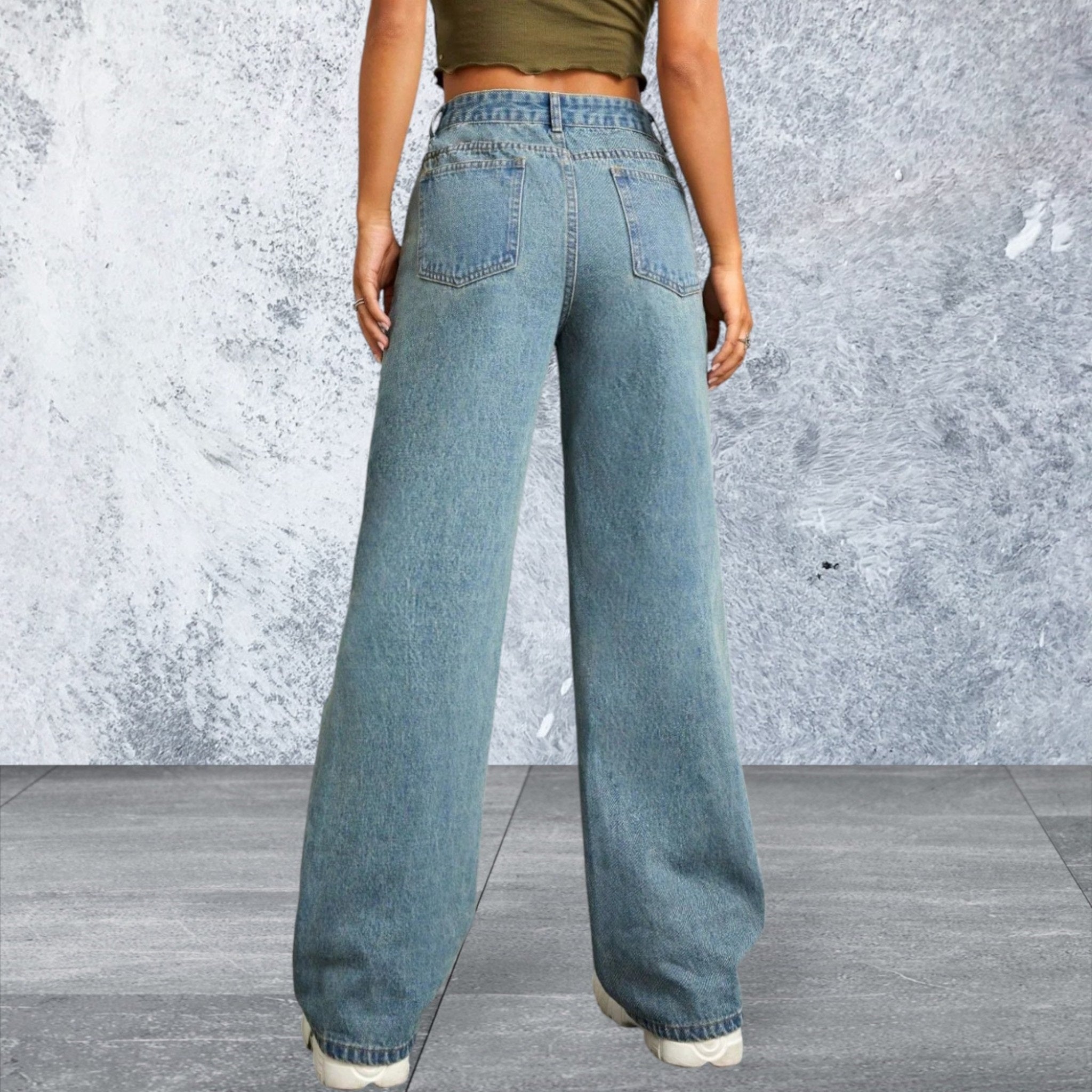 These Women's Wide Leg Distressed Jeans with Pockets are a must-have for any fashion-forward woman. Made with high-quality denim, these jeans feature a wide leg design that flatters all body types. The distressed detailing adds a touch of edginess, while the pockets provide functionality and style. Upgrade your wardrobe with these versatile and comfortable jeans.