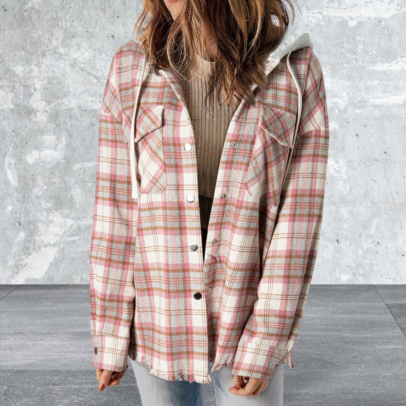 Expertly crafted for both style and functionality, this Multicolour Plaid Flap Pocket Hooded Raw Hem Jacket is a must-have for any fashion-forward individual. Featuring a timeless plaid design, convenient flap pockets, and a comfortable raw hem, this jacket is the perfect combination of fashion and practicality. Stay warm and on-trend with this versatile piece.
