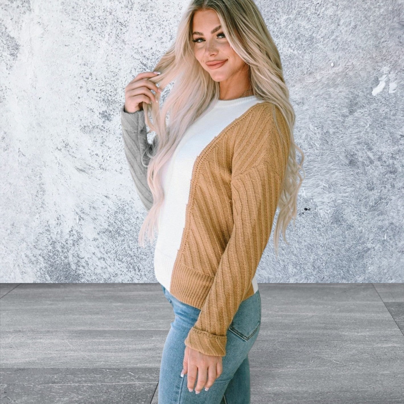 This multicolor colorblock textured drop shoulder sweater is a must-have for any wardrobe. Made with quality materials, it offers both style and comfort. The unique colorblock design adds a touch of modern flair, while the drop shoulder detail provides a relaxed and effortless fit. Elevate your look and stay cozy with this versatile sweater.