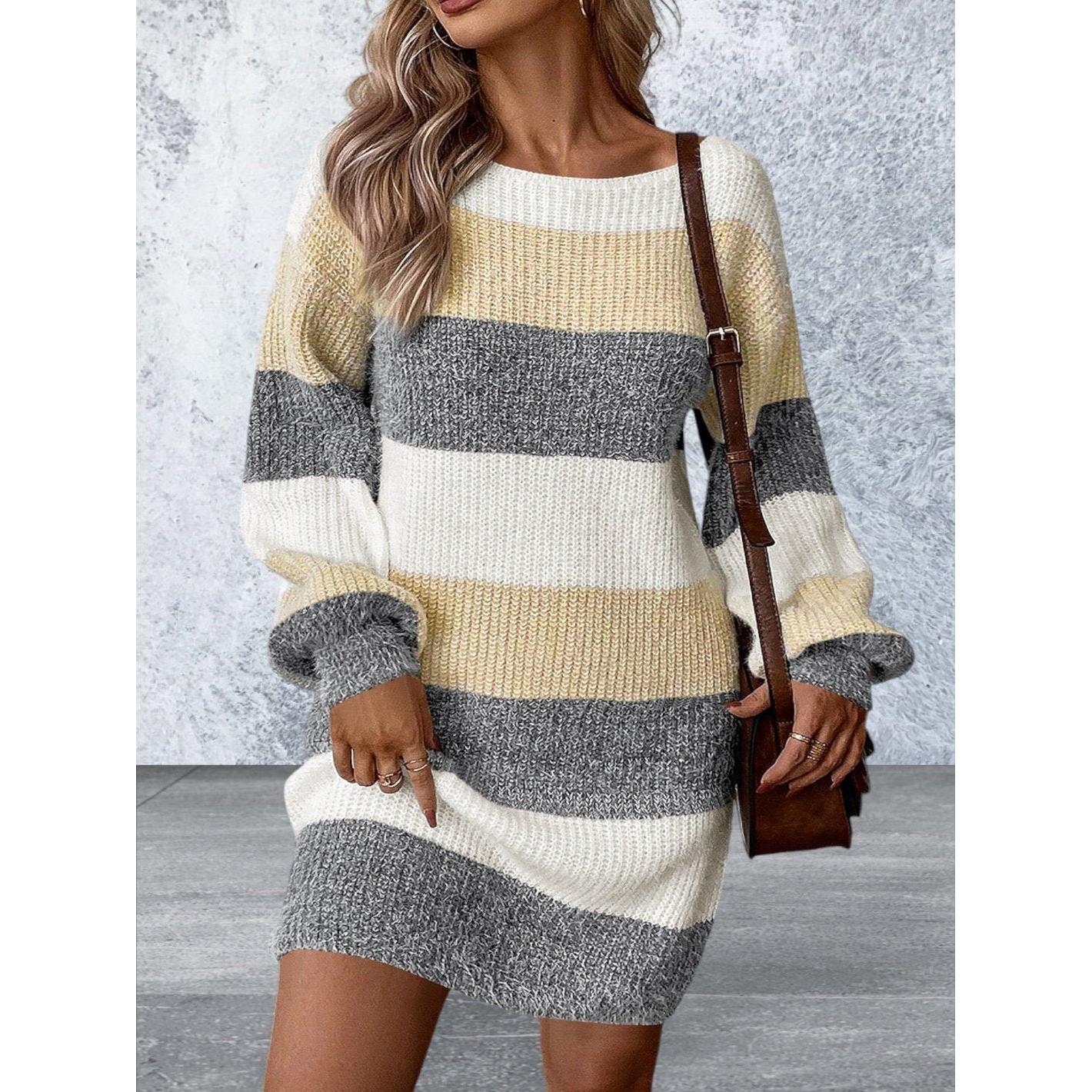 This Gray Stripe Colorblock Bubble Sleeve Drop Shoulder Sweater Dress is expertly crafted with soft, high-quality fabric for cozy comfort and effortless style. The colorblock design and bubble sleeves add a modern touch, making it a perfect choice for both casual and formal occasions. Made with drop shoulder construction for a relaxed fit.