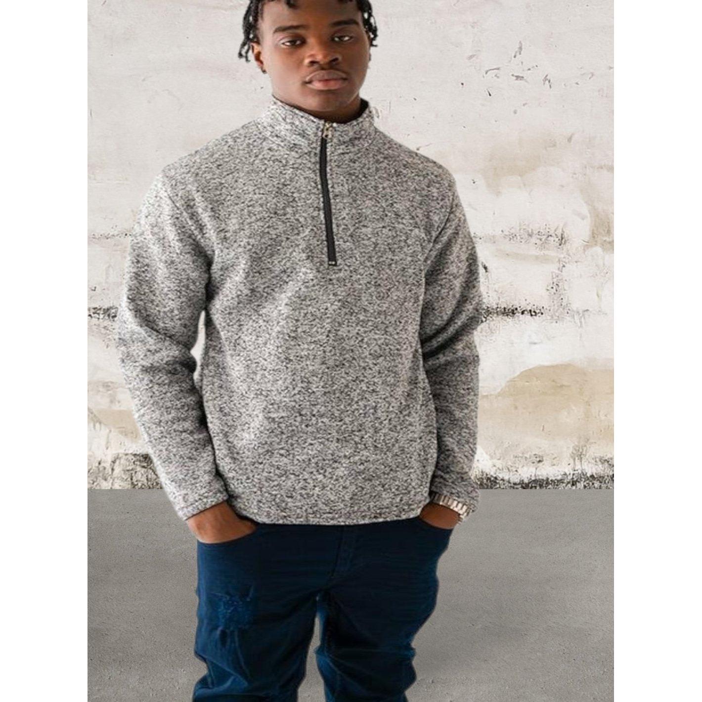 This classic men's long sleeve sweater features a ¼ front zip closure for versatile layering options. Perfect for a chilly day, this sweater provides designed warmth and breathability to provide comfort no matter the weather.