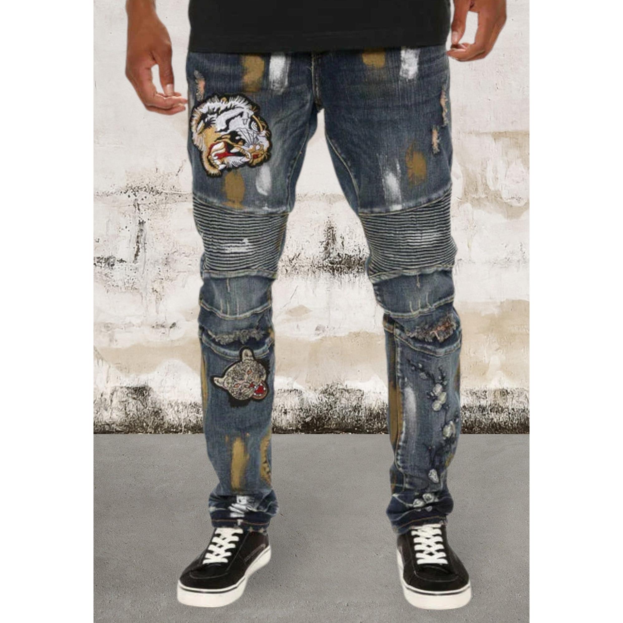 These Men's Moto Ribbed Knee Patch Detail Jeans offer an edgy, sophisticated style to complete any casual look. Constructed of durable denim, they feature unique ribbed detailing with knee patch accents to add a subtle hint of texture and interest.