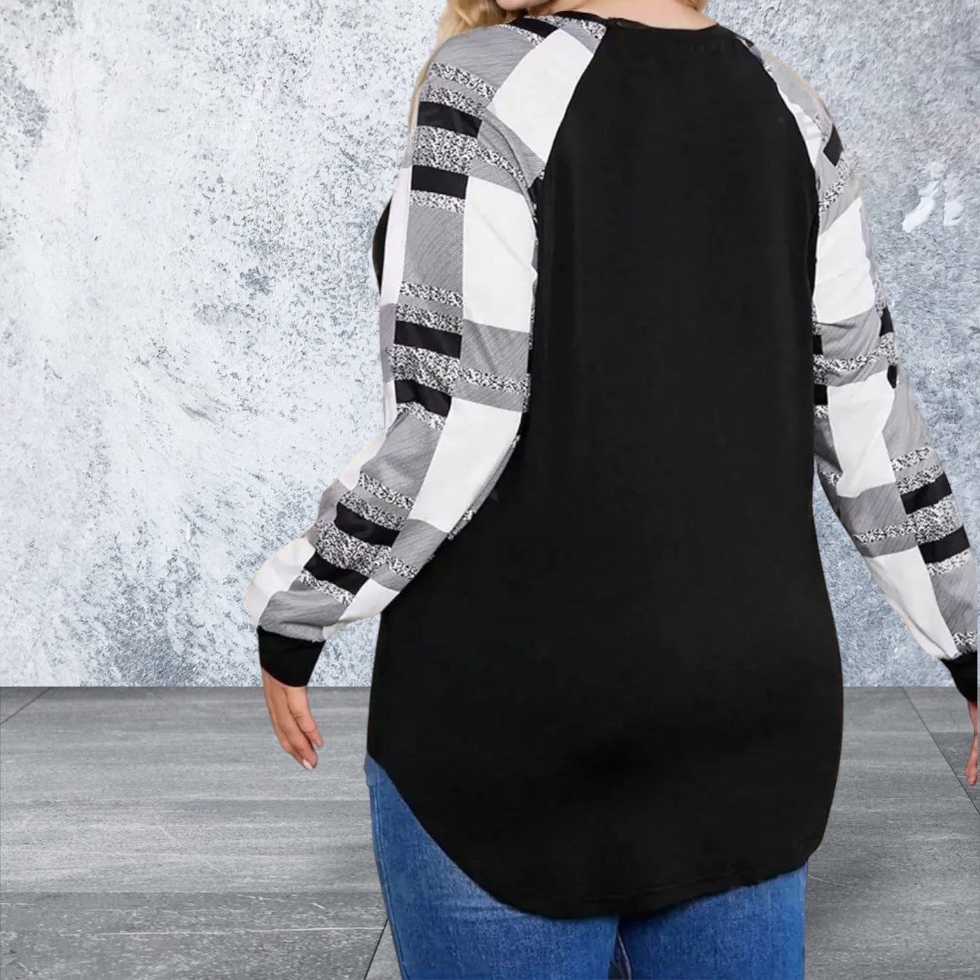 This Plus Size Long Sleeve Plaid Round Neck Top is perfect for adding a touch of style and versatility to your wardrobe. Made with soft and comfortable fabric, this top is designed to flatter your curves and provide all-day comfort. The plaid design and round neck add a classic and timeless look to any outfit.