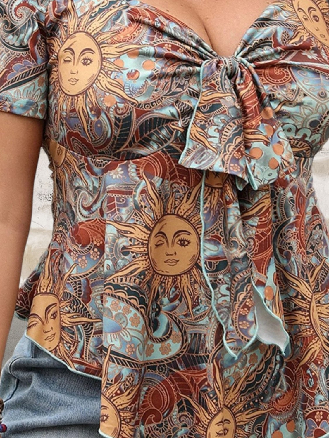 Introducing our Plus Size Short Sleeve Printed Sweetheart Neck Top! Made with comfort and style in mind, this top features a flattering sweetheart neckline and trendy print, perfect for any occasion. Available in multiple sizes to fit and flatter all body types. Upgrade your wardrobe now!