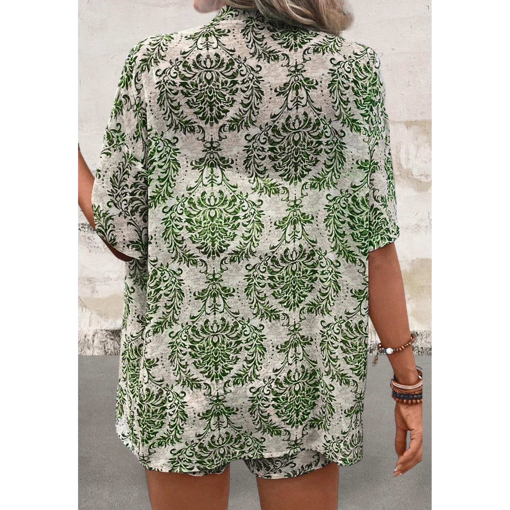 This green vintage floral print open top and shorts outfit is the perfect addition to your wardrobe. The lightweight and breathable fabric provides comfort and style, while the open top design adds a touch of sophistication. With a trendy print and versatile shorts, this outfit is perfect for any occasion.