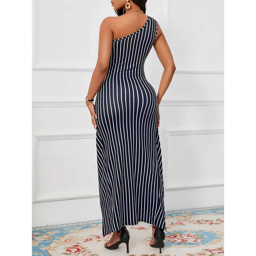Upgrade your wardrobe with our Striped One Shoulder Spring and Summer Dress! Made from lightweight and breathable fabric, this dress is perfect for warmer days. Its one shoulder design and vibrant stripes add a touch of chicness while keeping you comfortable and stylish. A must-have for any fashion-forward individual.