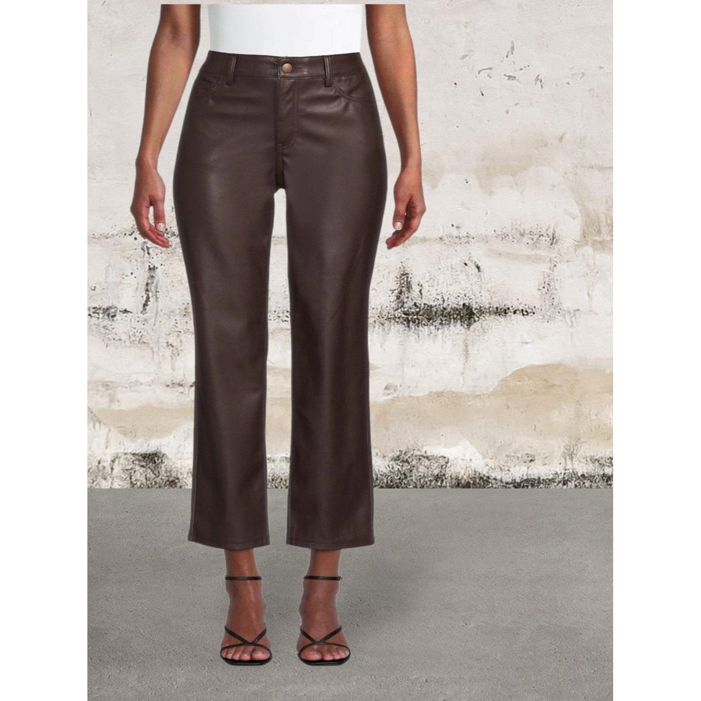These Women's Faux Leather Straight Pants boast a sleek, sophisticated look, crafted from high-quality PU leather for supreme comfort and durability. With a slim-fit silhouette, they are conveniently machine washable for easy care. Perfect for the office or a night out.