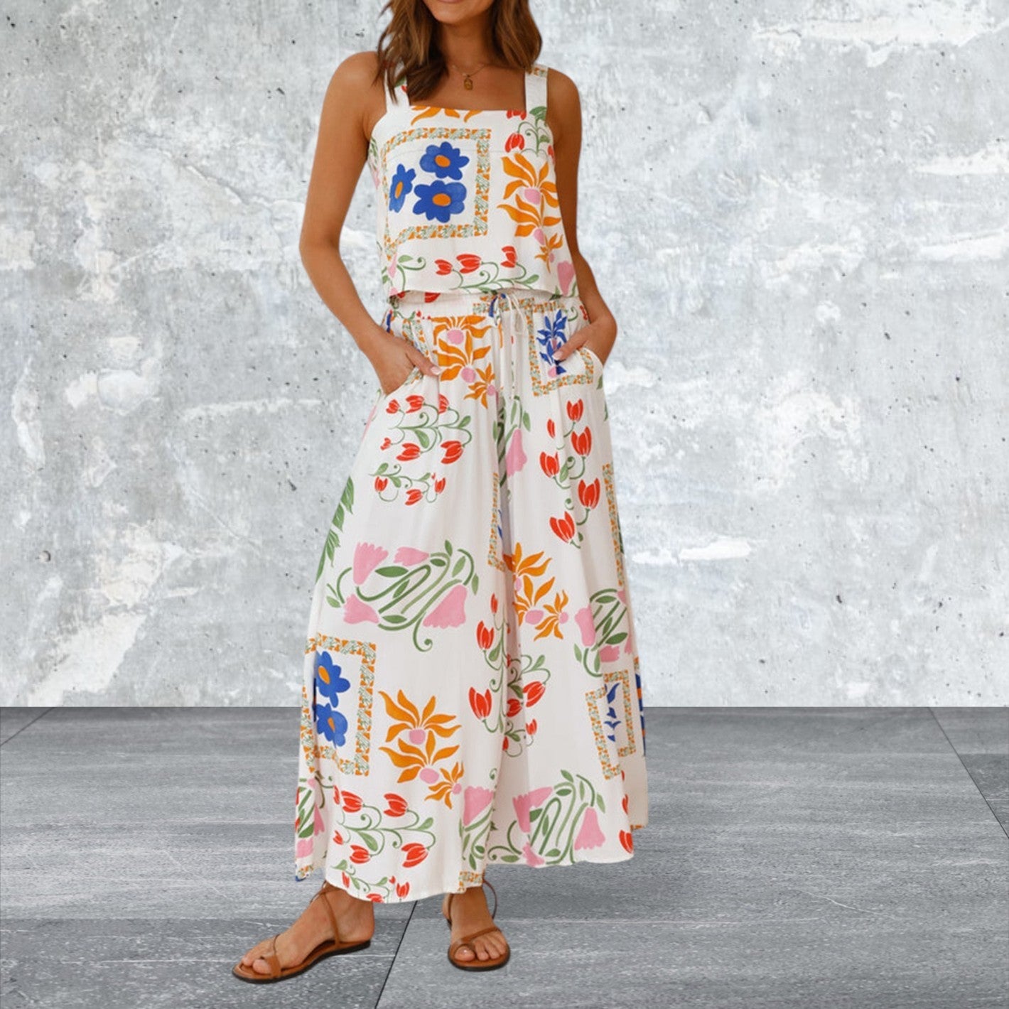 Sleeveless Square Neck Top and Wide Leg Pants Set