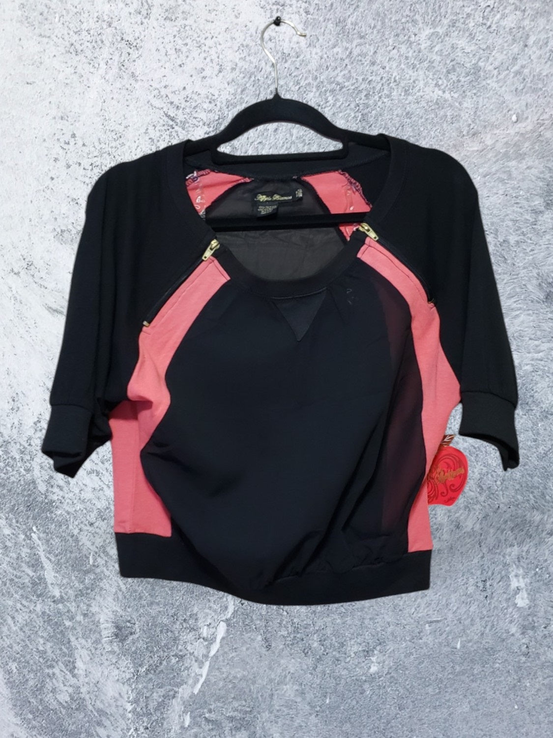 Apple Bottoms Zip Off The Shoulder Sheer Crop Top