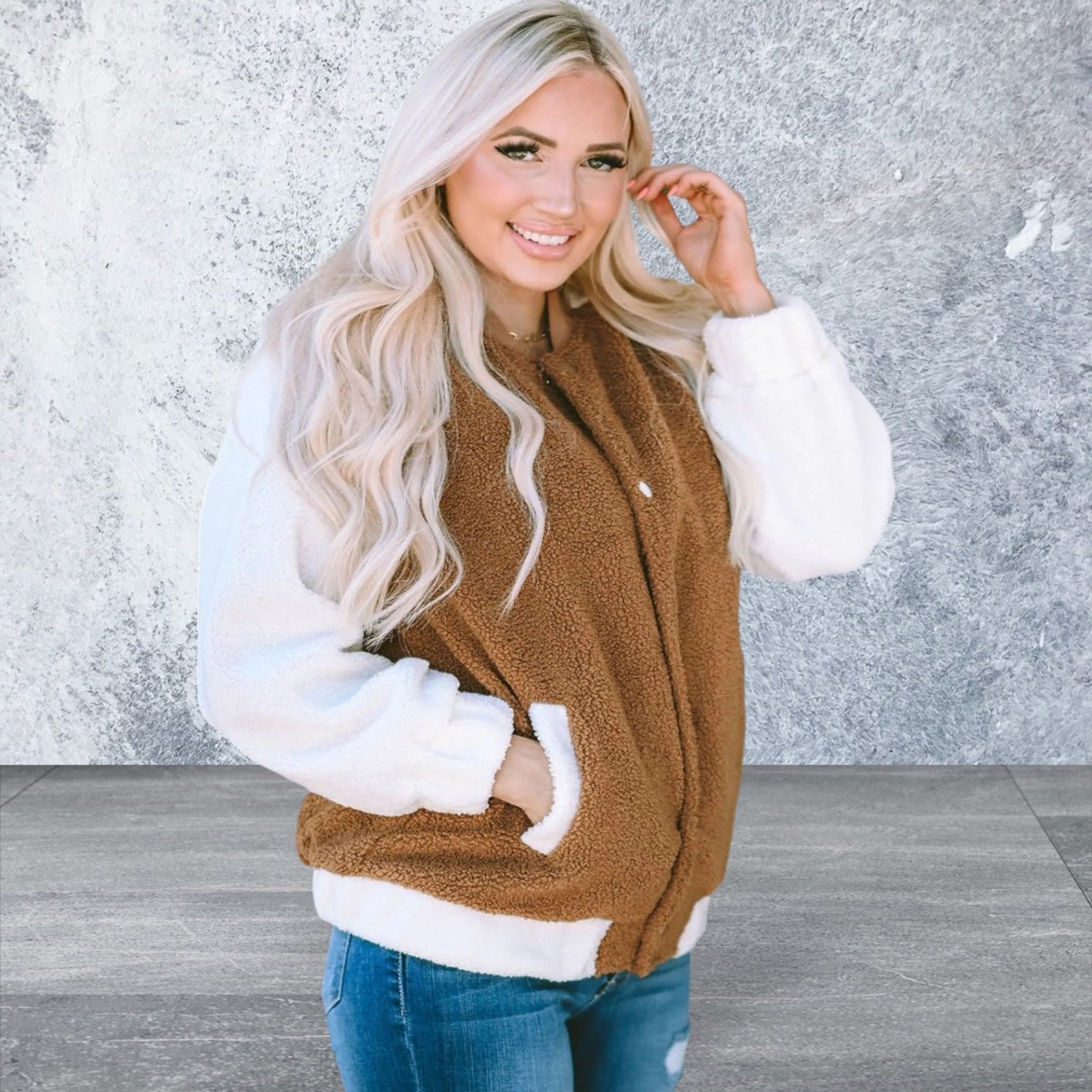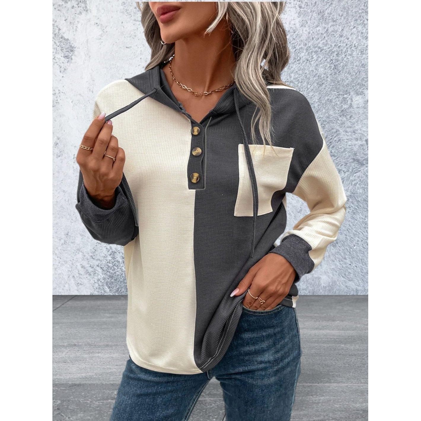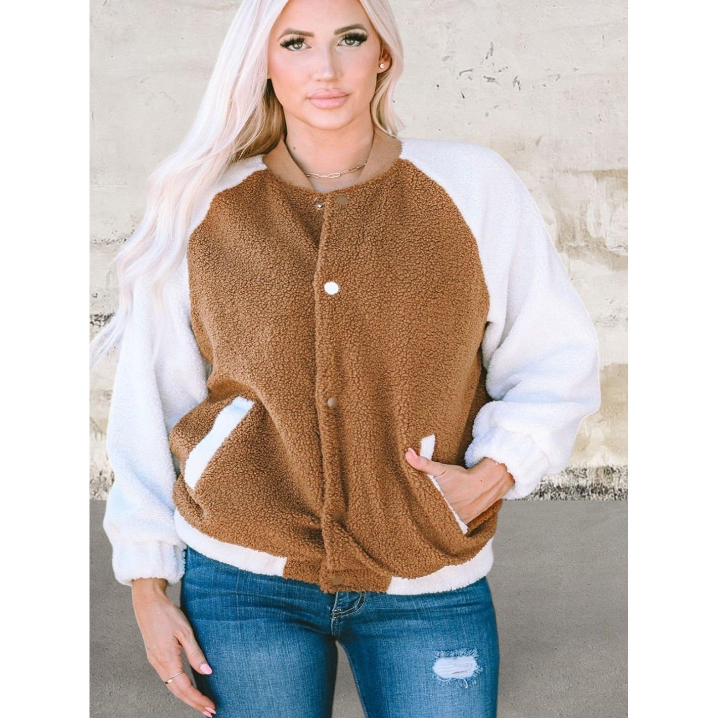 Long Sleeve Fleece Buttons Collar Sweatshirt