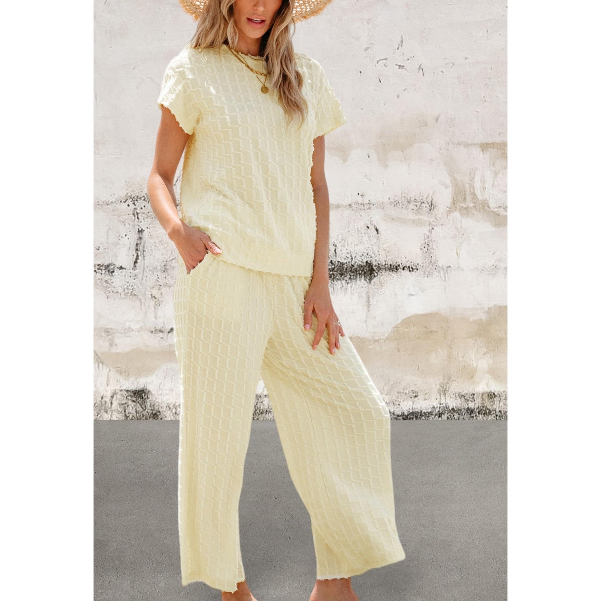 Short Sleeve Lattice Textured Casual Two Piece Set