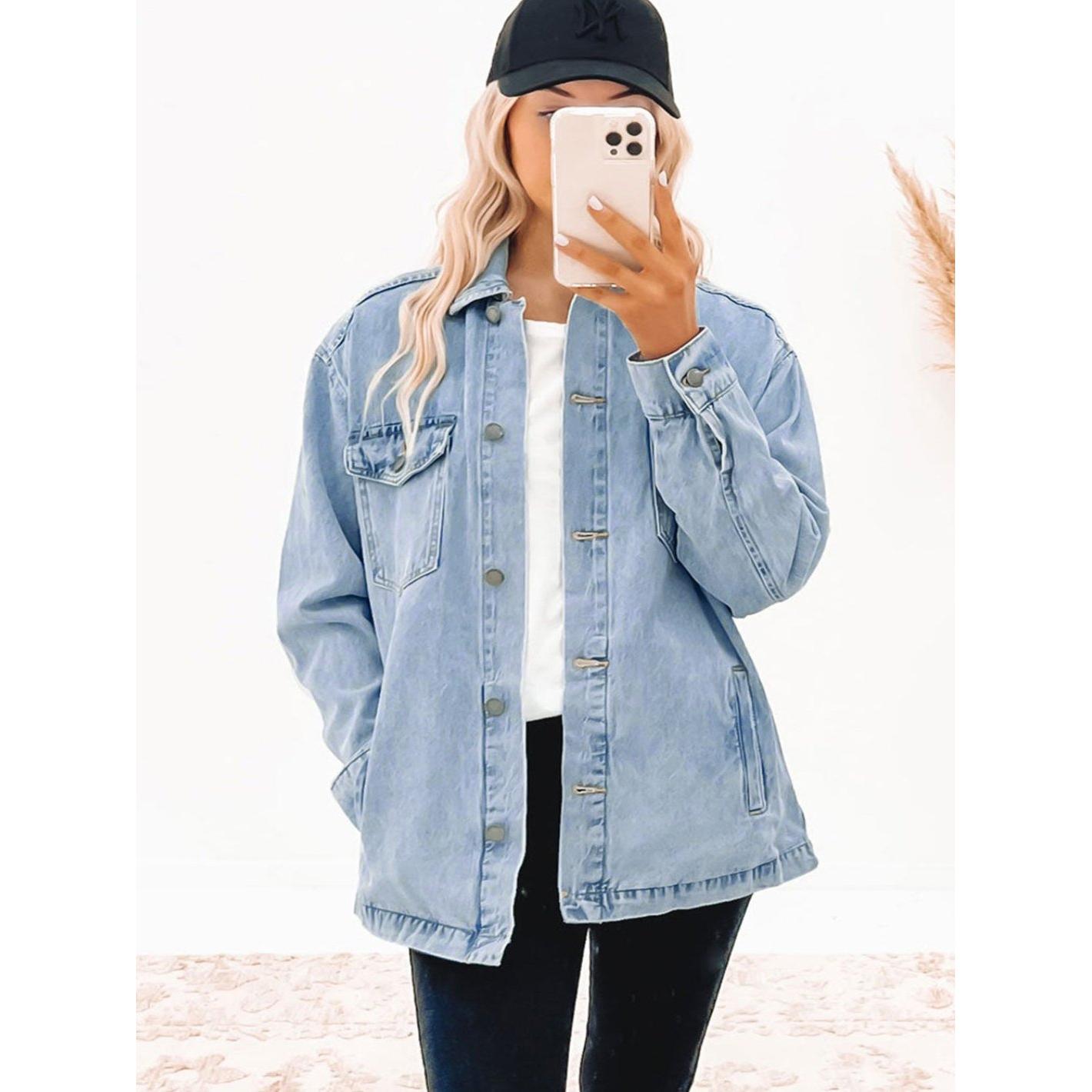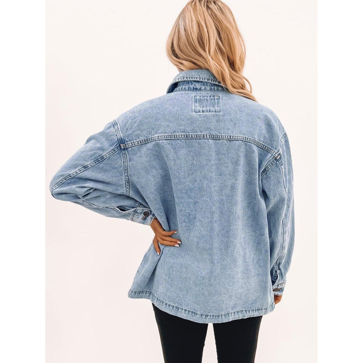 Sky Blue Acid Wash Flap Pocket Denim Jacket