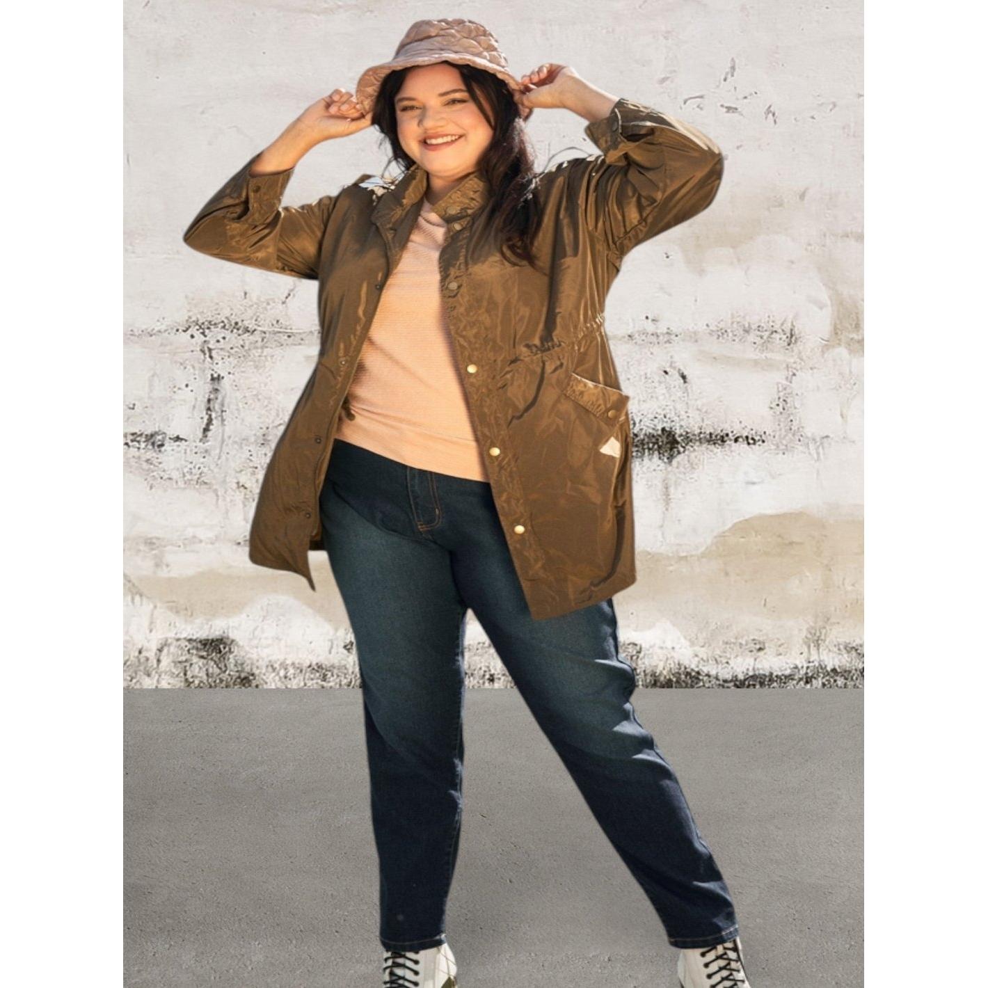 Plus Size Light Weight Zip Up And Button Down Fall Coat