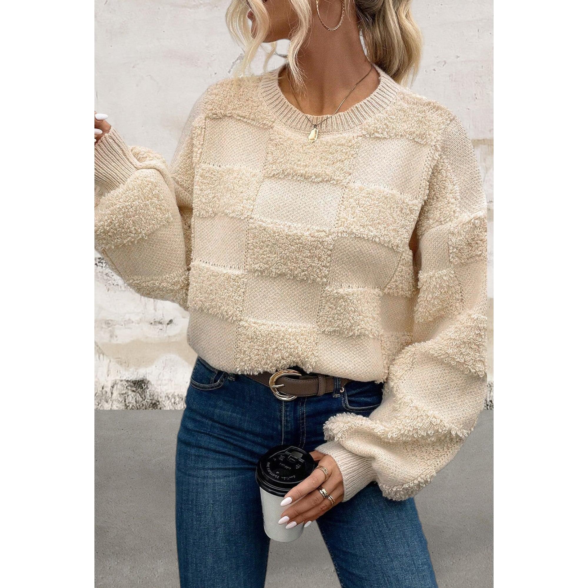 Round Neck knit Bishop Sleeve Stretchy Sweater Top