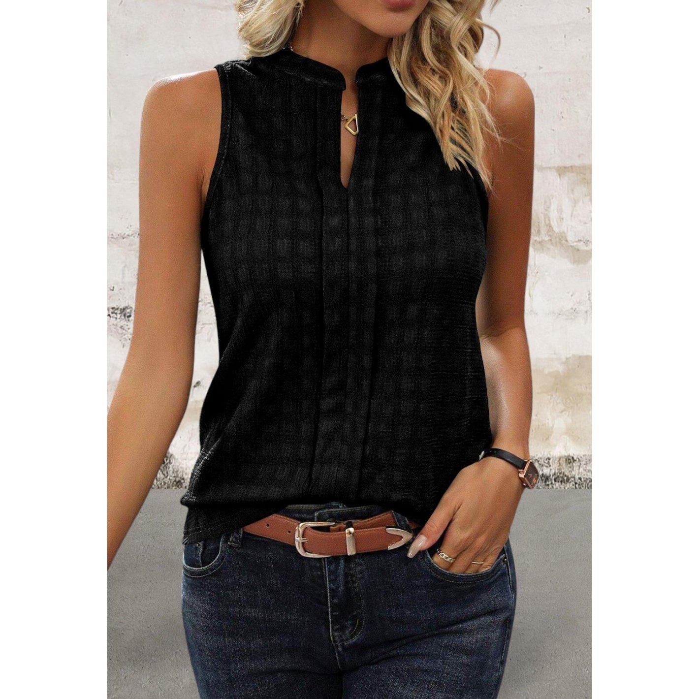 Sleeveless Trendy Crew Neck Pleated Front Top