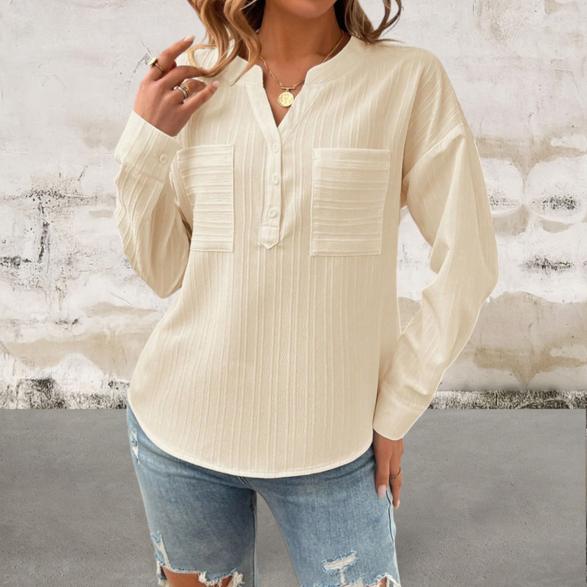 Round Neck knit Bishop Sleeve Stretchy Sweater Top
