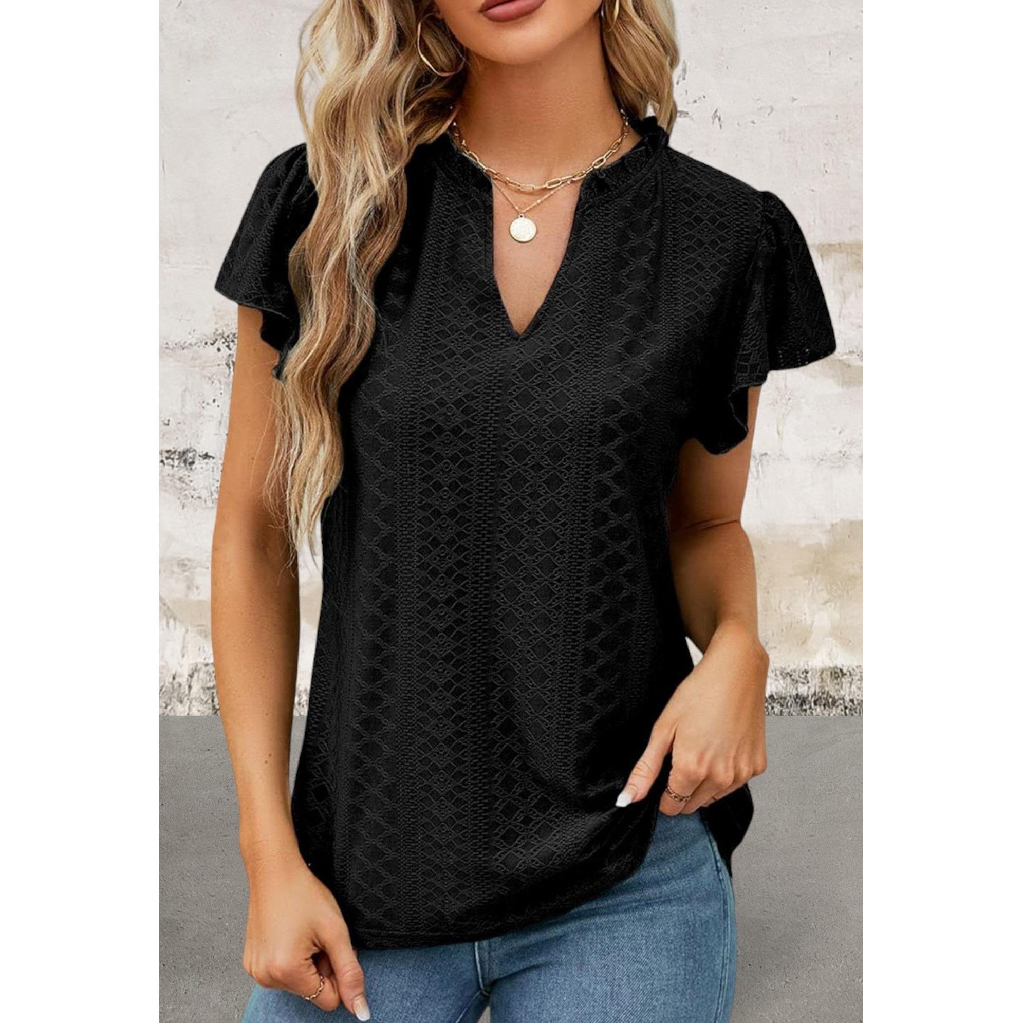 Sleeveless V Neck Wide Sleeve Crinkled Top