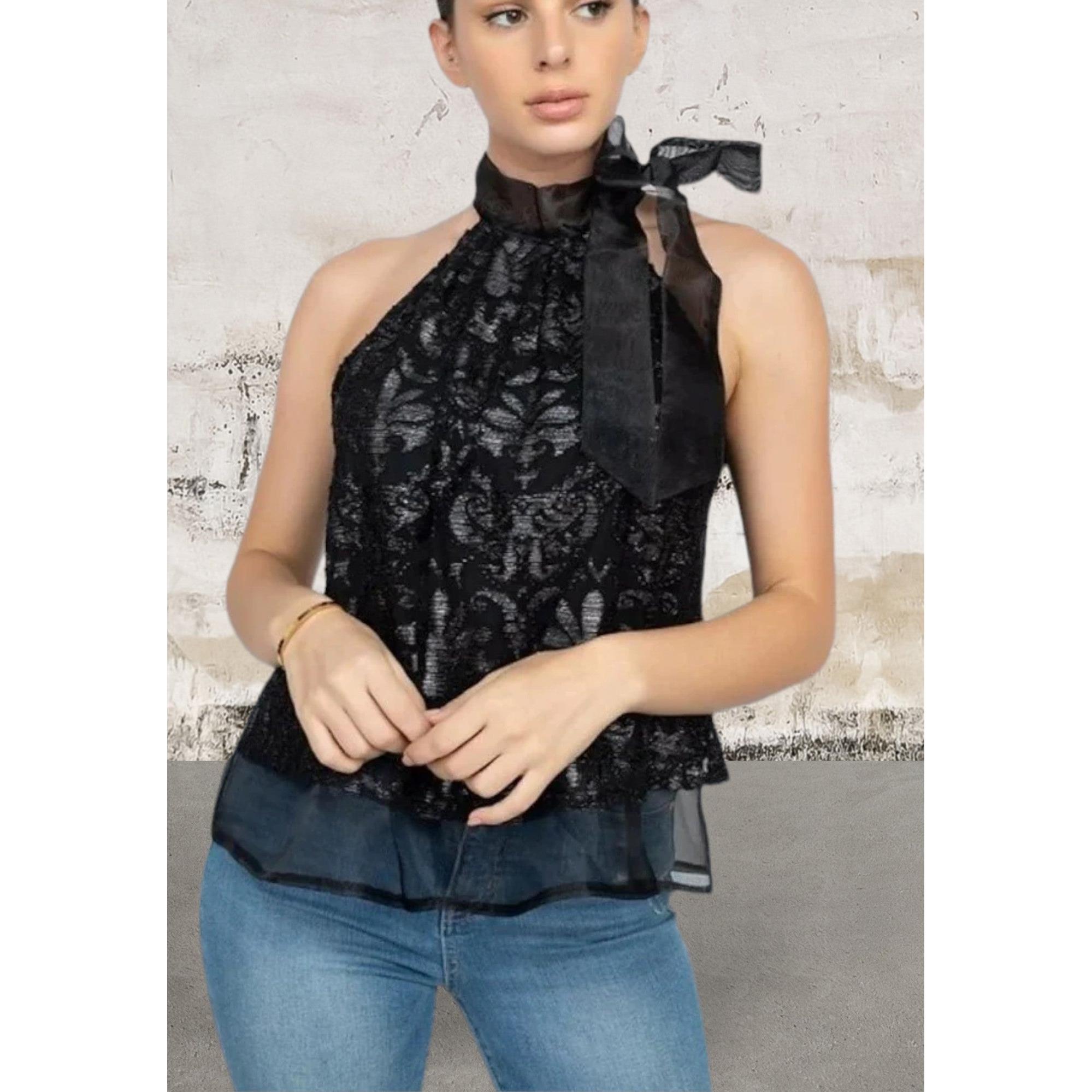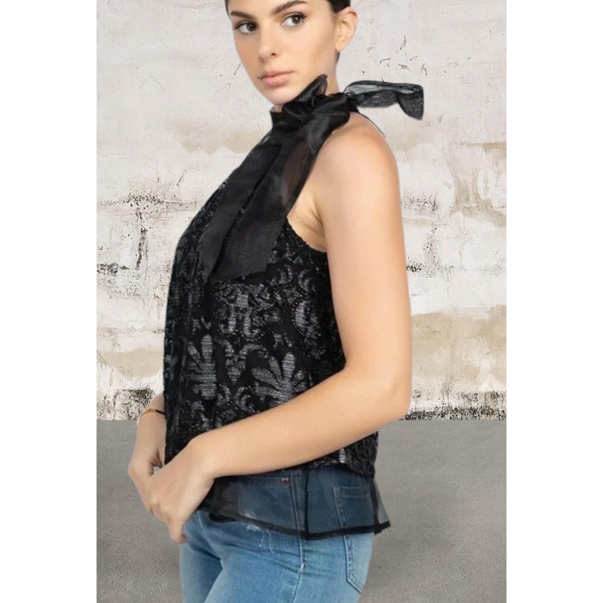 Sleeveless Butterfly Applique Mesh Overlay Tank Top